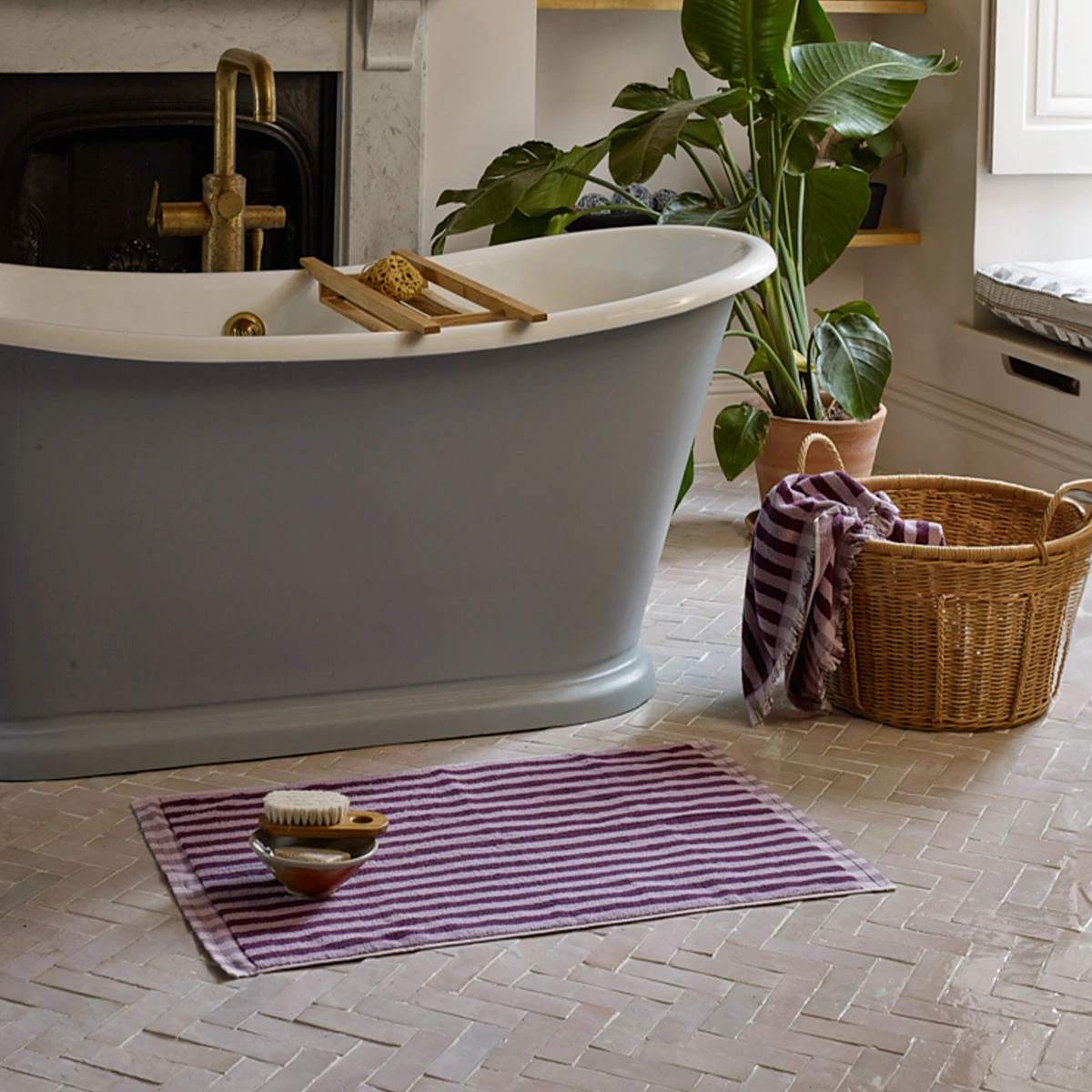 Evoke a sense of nostalgic charm with our Berry Mauve Pembroke Stripe cotton bath mat. Made from sustainably sourced zero-twist cotton, our striped bath mats are highly absorbent and super soft, so you can step out of the bath onto plush comfort with ease.