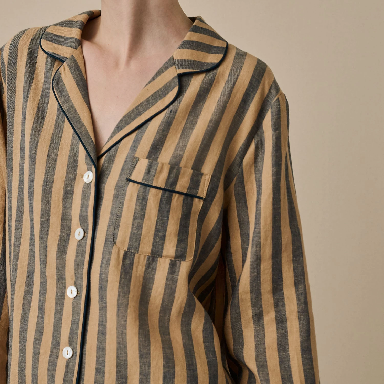 Blue & Porcini Striped Linen Tencel Women’s PJ Shirt