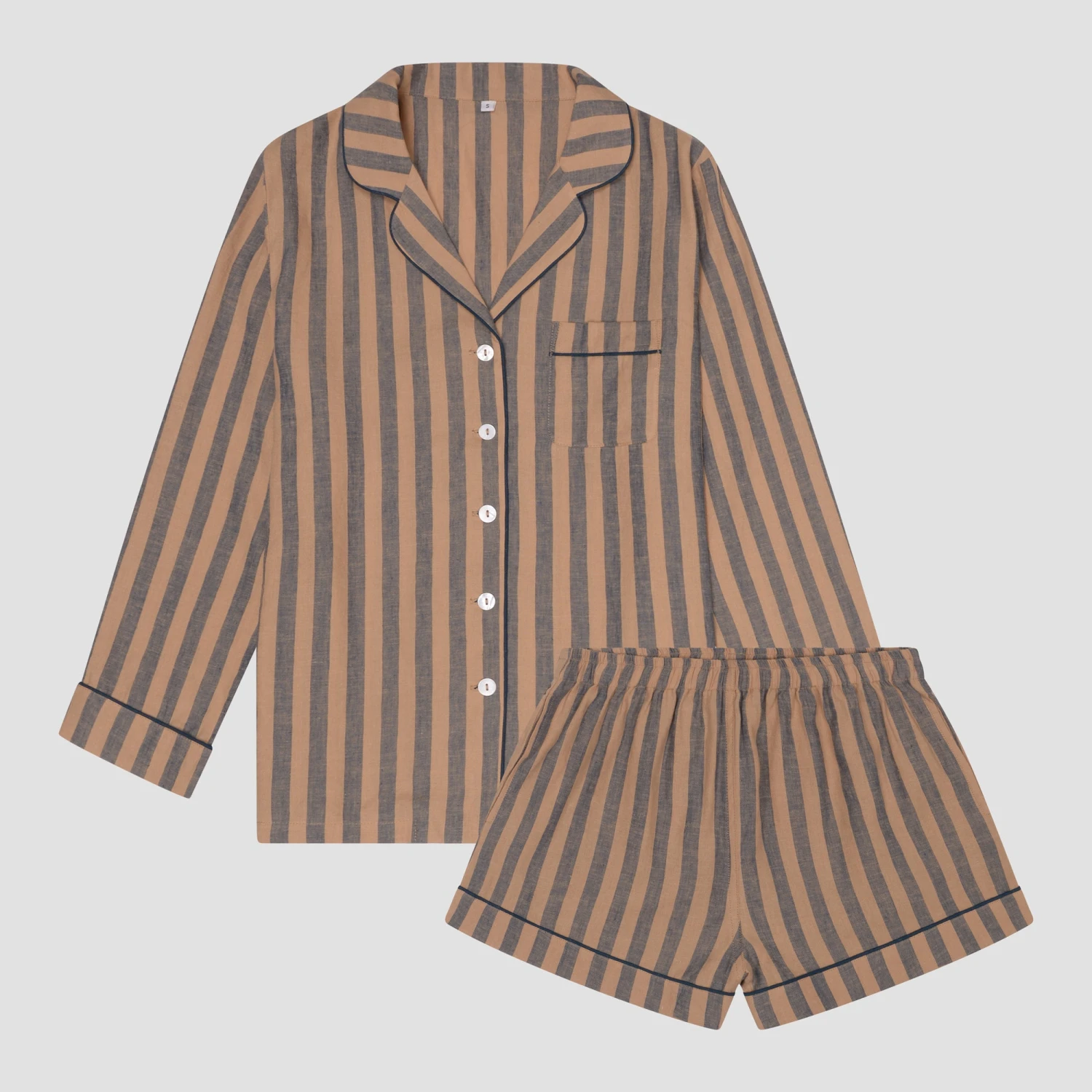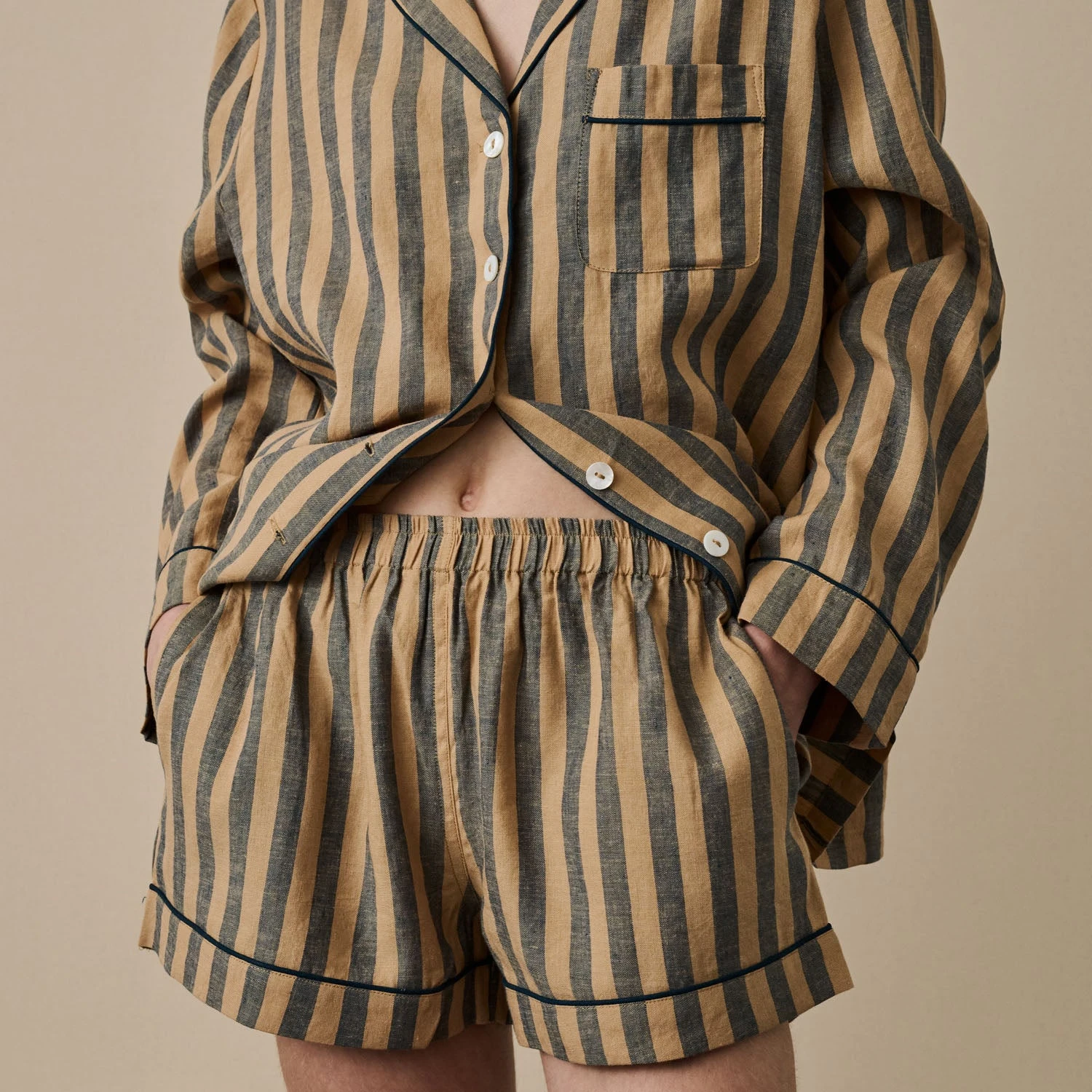 Made from a blend of European linen and TENCEL™ fibres from sustainably sourced wood pulp, our linen Tencel pyjama shorts set is seriously soft and breathable, comprising a classic fitting shirt and shorts. This hybrid fabric blend results in a flattering drape that’s thermoregulating, naturally antibacterial, and gentle on skin.