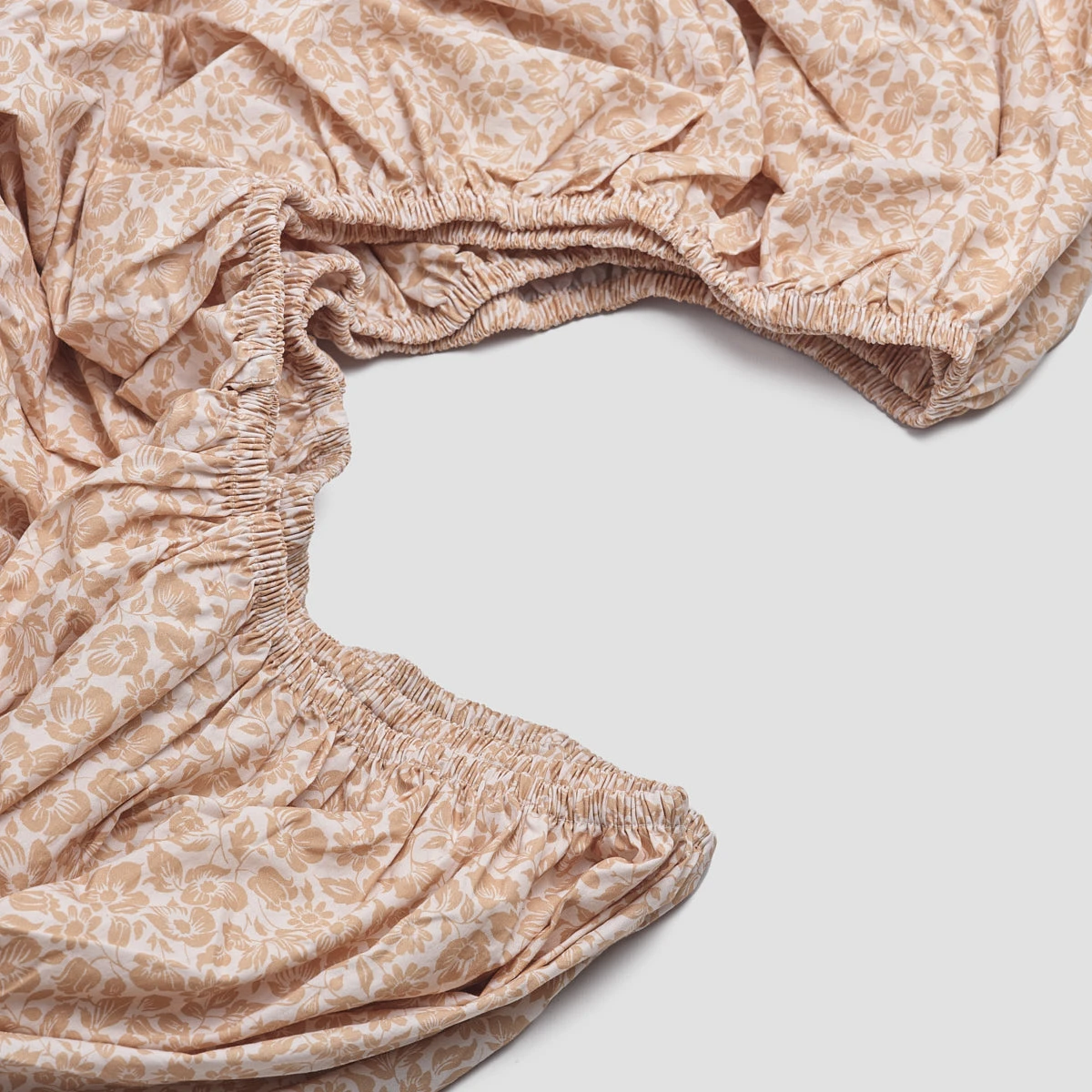 Meet our first floral cotton bedding collection, inspired by the romantic charm of English country houses. Working with The Design Library – the world’s largest collection of documentary fabrics, paintings, prints and patterns – we sourced an archival floral print and updated it for a modern setting, resulting in our new ‘Meadow’ bedding range. Our Meadow Floral Printed Cotton Fitted Sheets are designed to be mixed and matched with our plain cotton colours, with our Butterscotch Meadow Floral Printed Cotton Fitted Sheet pairing particularly well with Pear and French Rose.