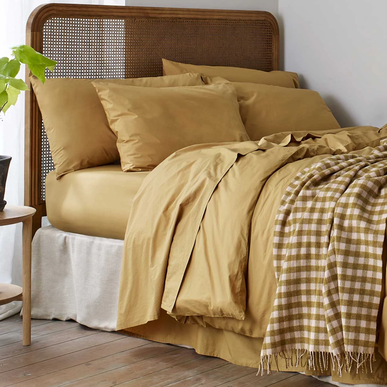 Washed for ultimate softness, our 100% cotton percale flat sheets are perfect for lovers of no-fuss, high quality cotton bedding. The percale weave allows for a relaxed, matte finish while the loose nature of the weave makes the sheets highly breathable and airy. A rich and earthy toffee hue, our Butterscotch fitted sheets can be tucked into your mattress or used as an extra layer under your duvet cover.