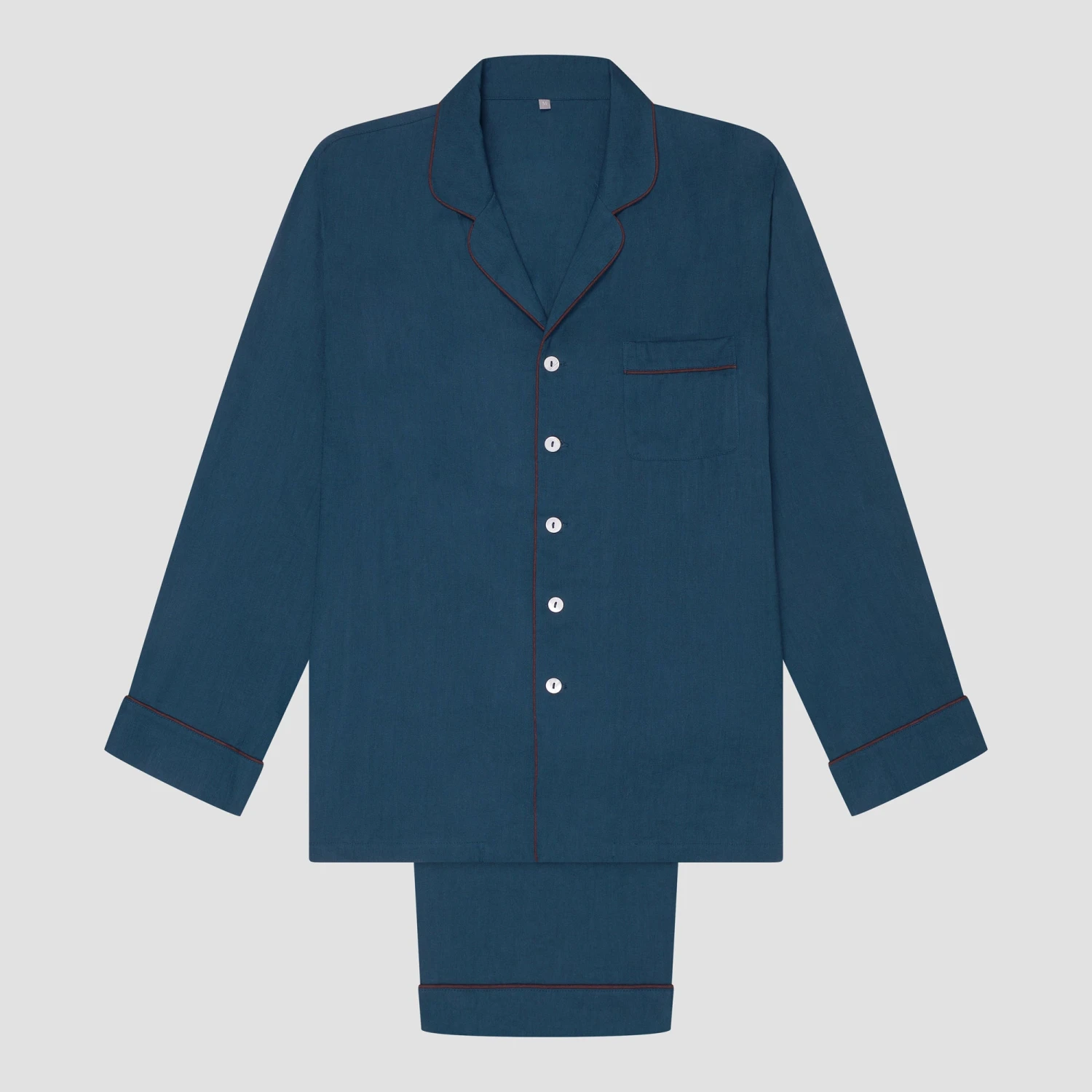 Marine Blue Linen Tencel Men’s Pyjama Trouser Set