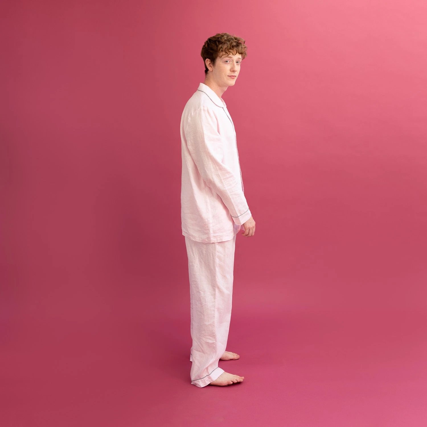 Made for nights in and slow mornings, our Men’s Blush Pink Pyjama Trouser Set is made from super soft 100% stonewashed linen. Linen keeps you cosy and warm in the winter and cool in the summer. The shirt and trouser shape is timeless, yet being made from lightweight natural linen makes this pyjama set effortlessly comfortable.