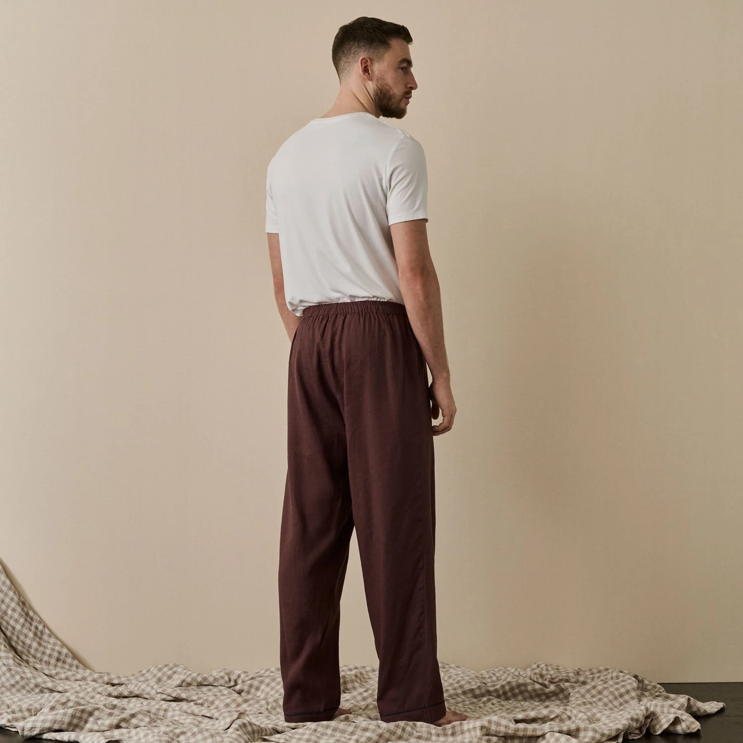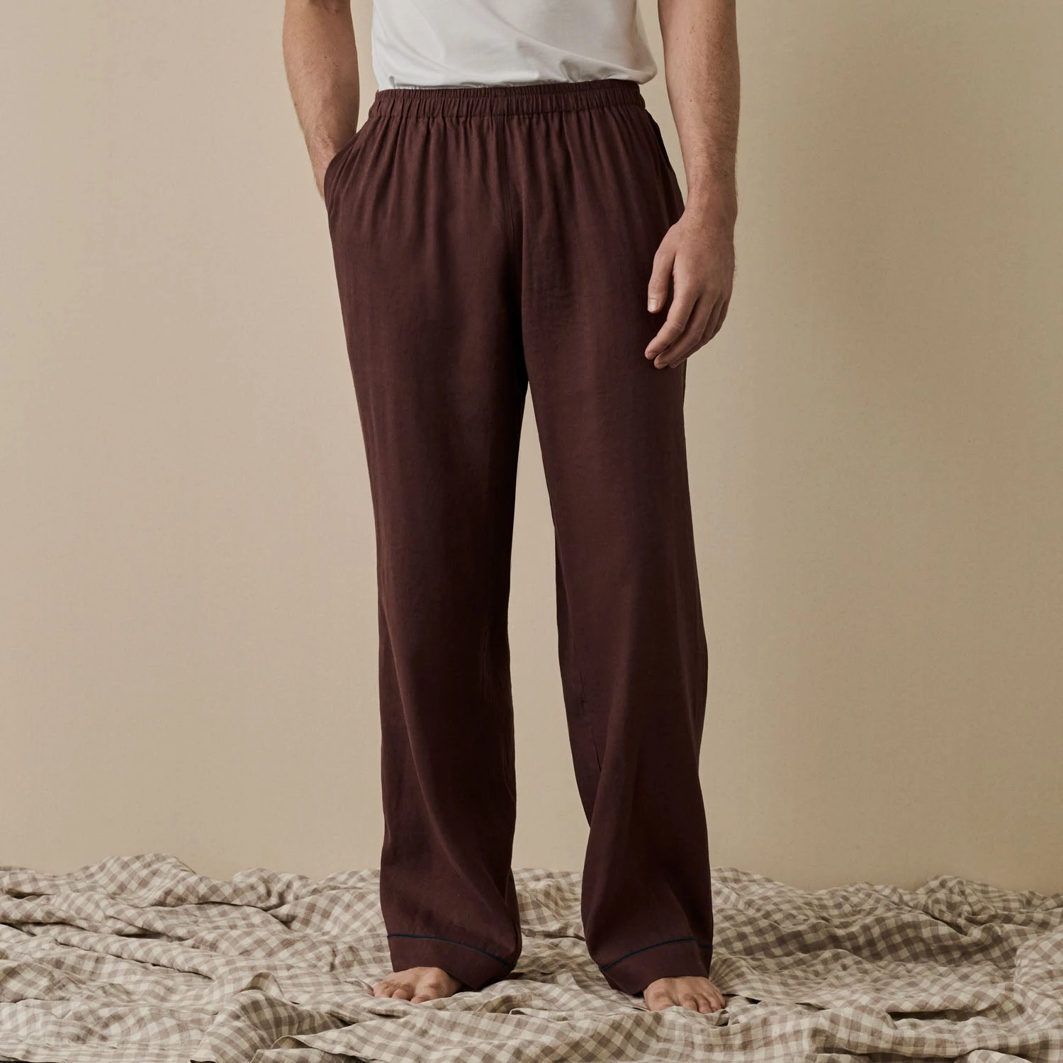 Men’s Conker Brown Linen Tencel Pyjama Trousers