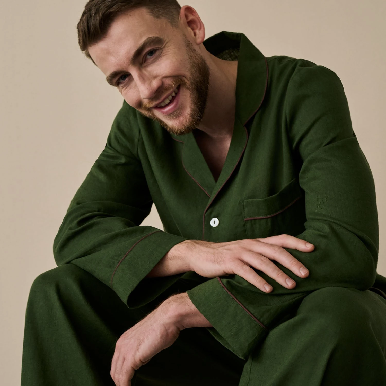 Men’s Fern Green Linen Tencel Pyjama Shirt