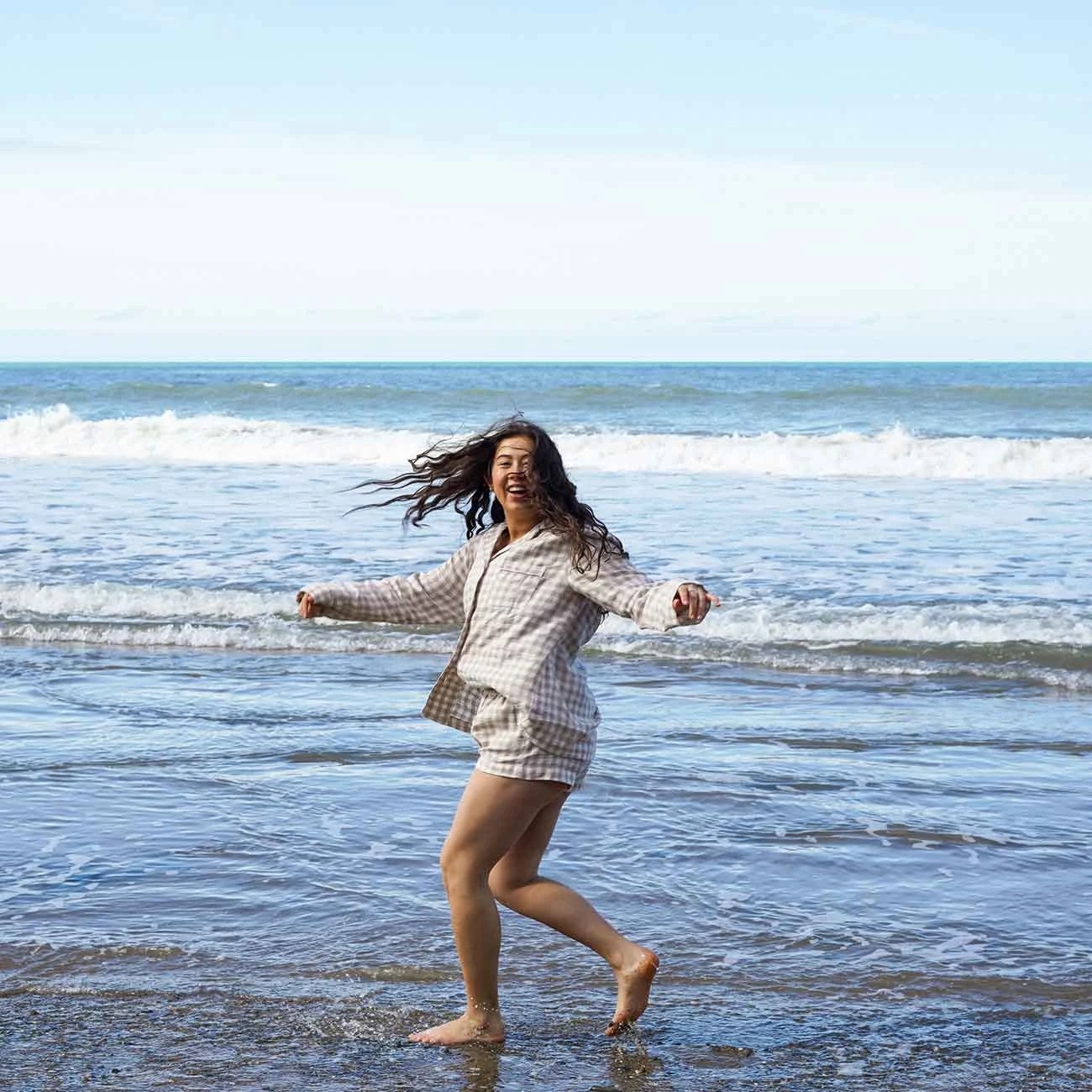 For a blissful night’s kip, snuggle into nostalgic neutrals with our Mushroom Gingham Linen Pyjama Shorts Set, made from super soft 100% stonewashed linen. Made for slow weekend mornings and cosy nights in, our gingham linen sleepwear collection is completely natural and thermo-regulating, keeping you snug during winter and cool throughout the summer. The shirt and short shape is classic, and perfect for those who want a mixture of cool and cosy. Our gingham sleepwear is an oversized, and more relaxed fit than our core range; we recommend sizing down if a more snug fit is desired.
