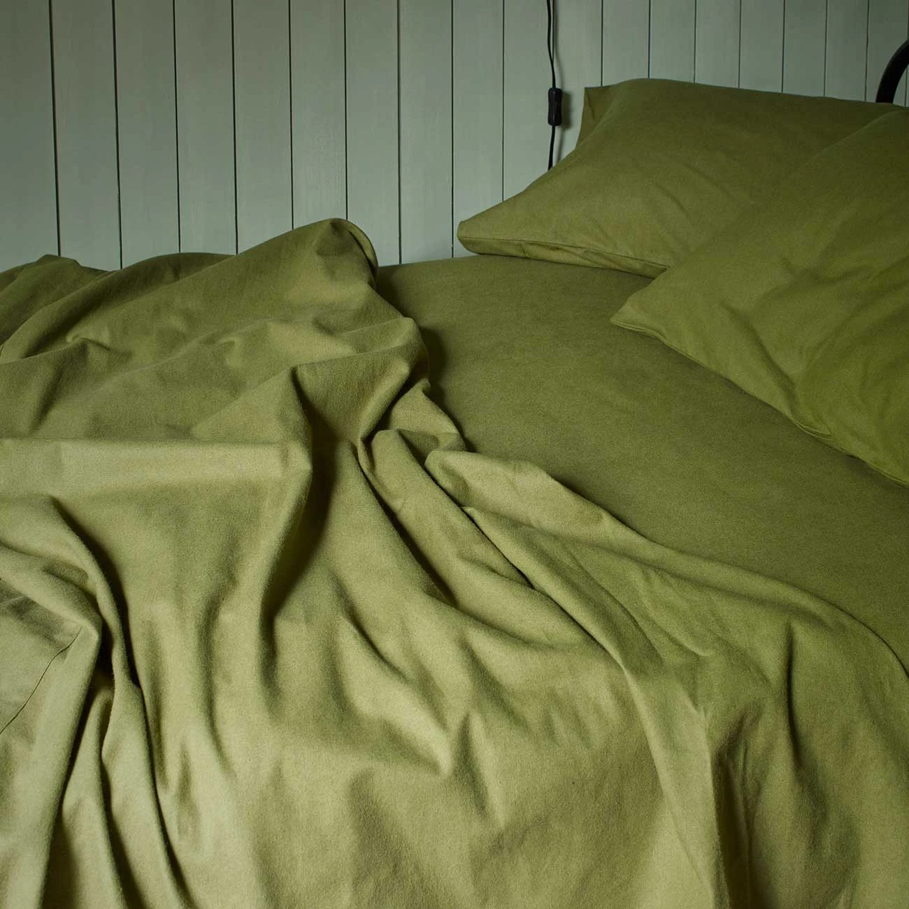 Create a cosy, relaxed space with our earthy Olive Green brushed cotton fitted sheet. Woven from a blend of sustainably sourced cotton and TENCEL™ fibres, the buttery soft fabric is warm yet breathable, keeping you comfortable on cooler nights. Our fitted sheets have elasticated edges all the way around and fit mattresses up to 40cm deep.