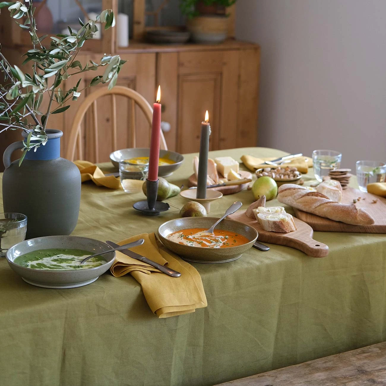 The Pottery West for Piglet Dinner Bowl has a beautiful, speckled finish and is perfect for entertaining or everyday dining. Each piece is hand-thrown in the Pottery West studio in Sheffield in the UK, using iron-rich flecked stoneware. The Olive glaze is a simple, stylish, and versatile finish. The dark green hue has lots of character and you’ll find the occasional speckle showing through from the clay.
