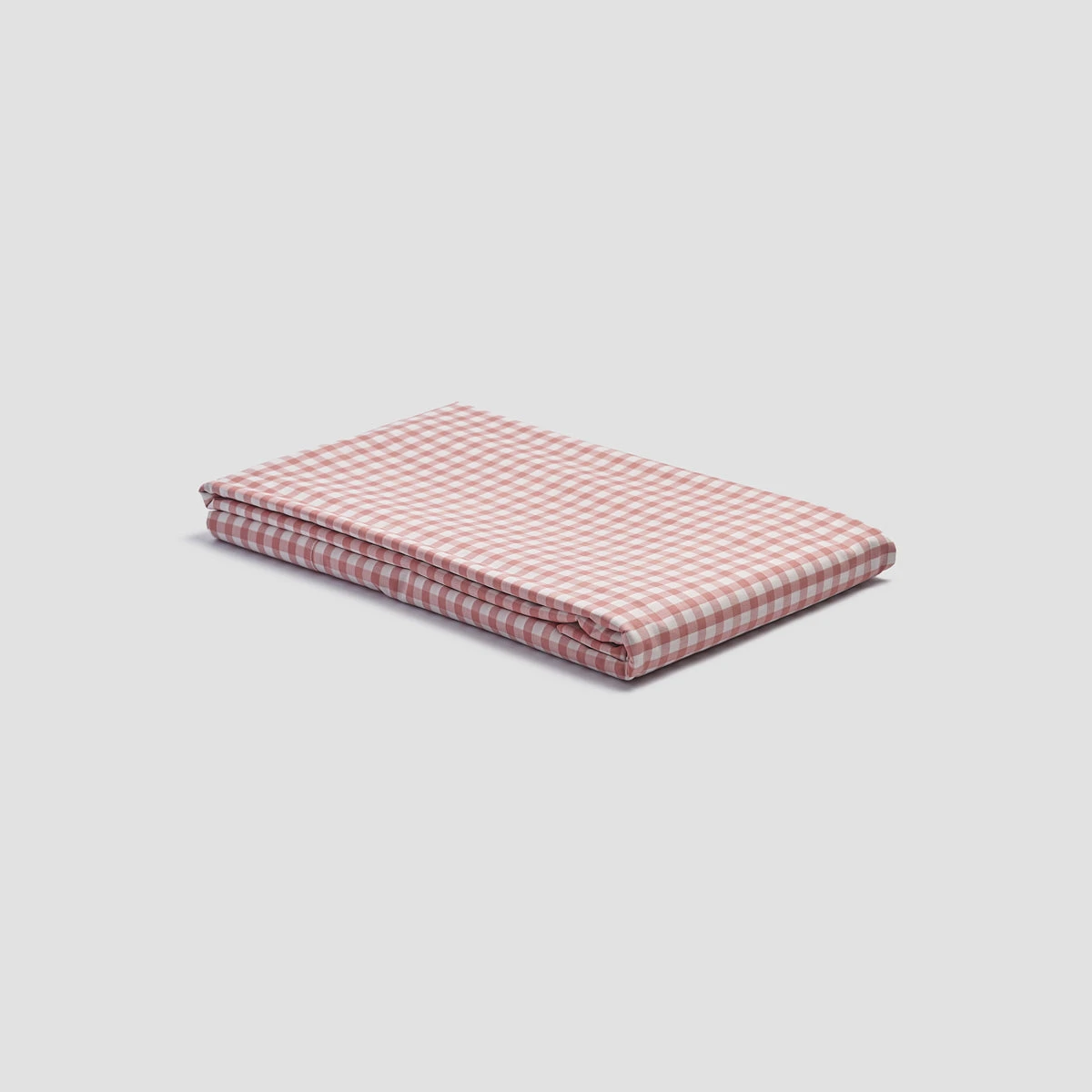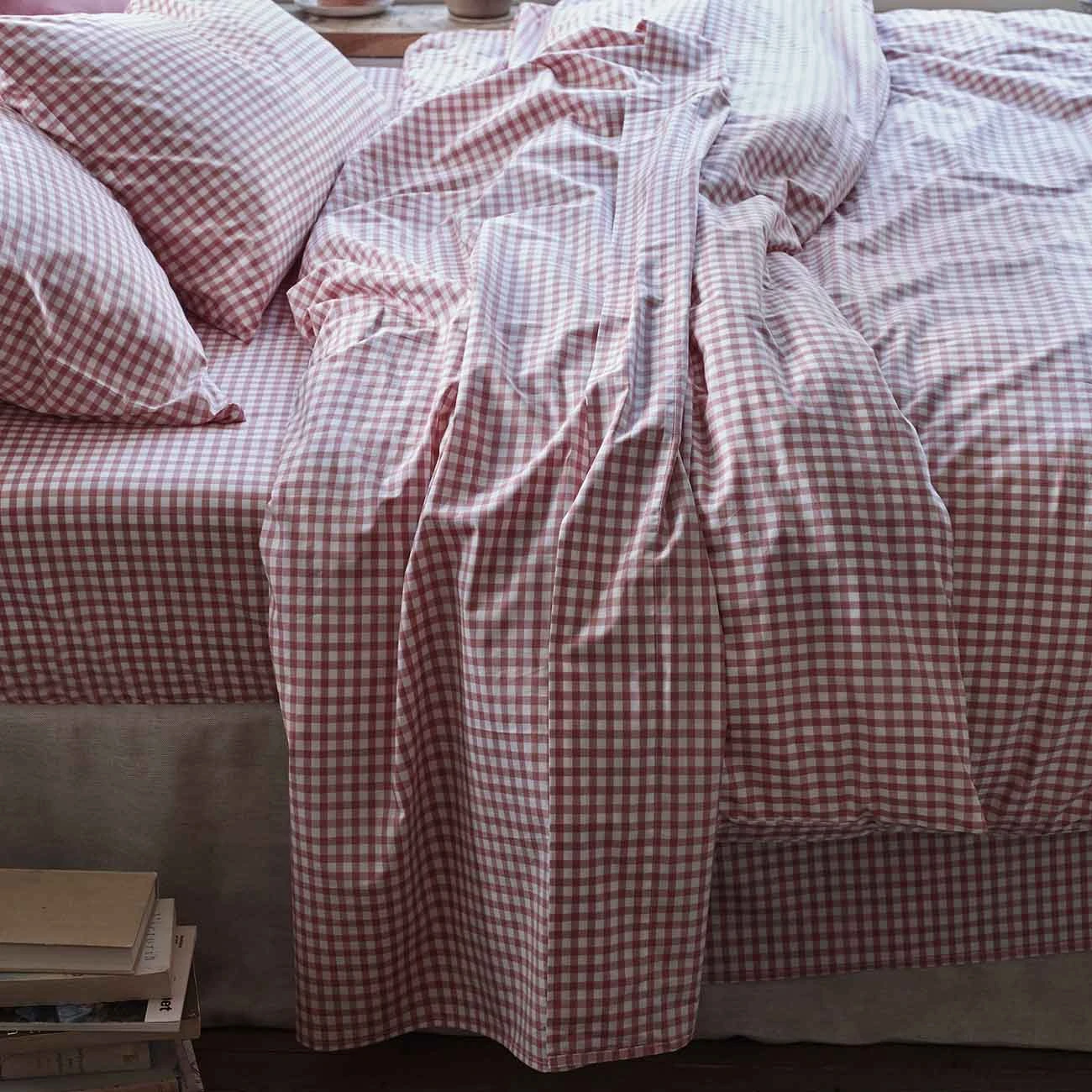 Our most-loved print: Gingham, is now available in crisp percale cotton. Made in Portugal from 100% cotton, our cotton gingham flat sheet will add a charming, country-inspired feel to your bedroom. The percale weave allows for a matte finish, high breathability and relaxed look – perfect for lovers of high quality cotton bedding. Our cotton gingham flat sheets can be tucked into your mattress or used as an extra layer under your duvet cover. Curate a unique bedtime look, sentimental to you and mix and match to your heart’s content. Our Red Dune gingham cotton range makes for a playful mono-print ensemble, but pairs beautifully with plain washed cotton colours: White, Parchment or French Rose.