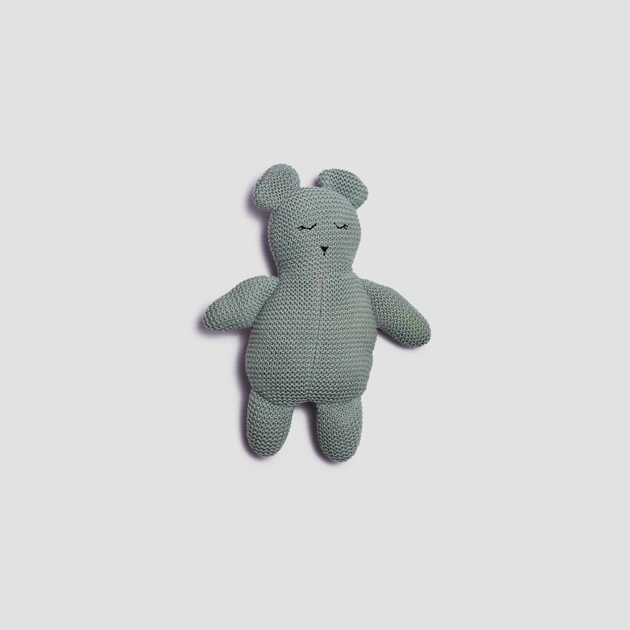 This adorable knitted teddy bear in our gentle blue Sweet Pea hue is a gift that little ones will treasure for years to come. Made from knitted organic cotton with a soft and squishy stuffing, it’s suitable for newborns and makes the perfect cuddling companion for children big and small.