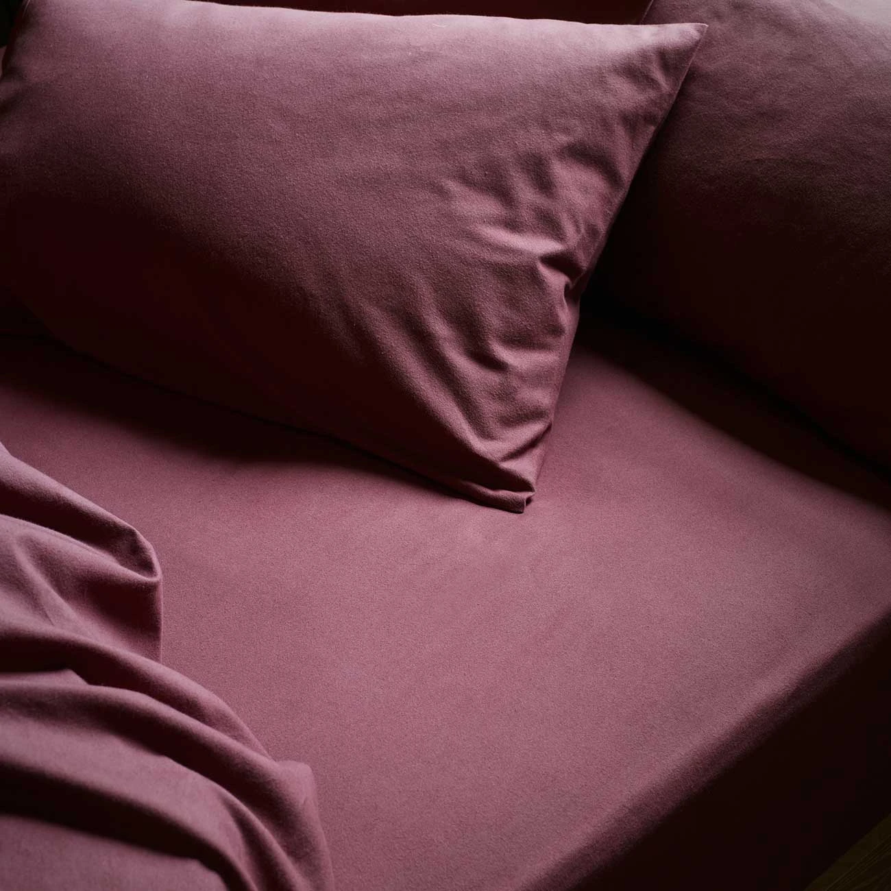 Create a cosy, relaxed space with our gentle Thistle brushed cotton fitted sheet. Woven from a blend of sustainably sourced cotton and TENCEL™ fibres, the buttery soft fabric is warm yet breathable, keeping you comfortable on cooler nights. Our fitted sheets have elasticated edges all the way around and fit mattresses up to 40cm deep.