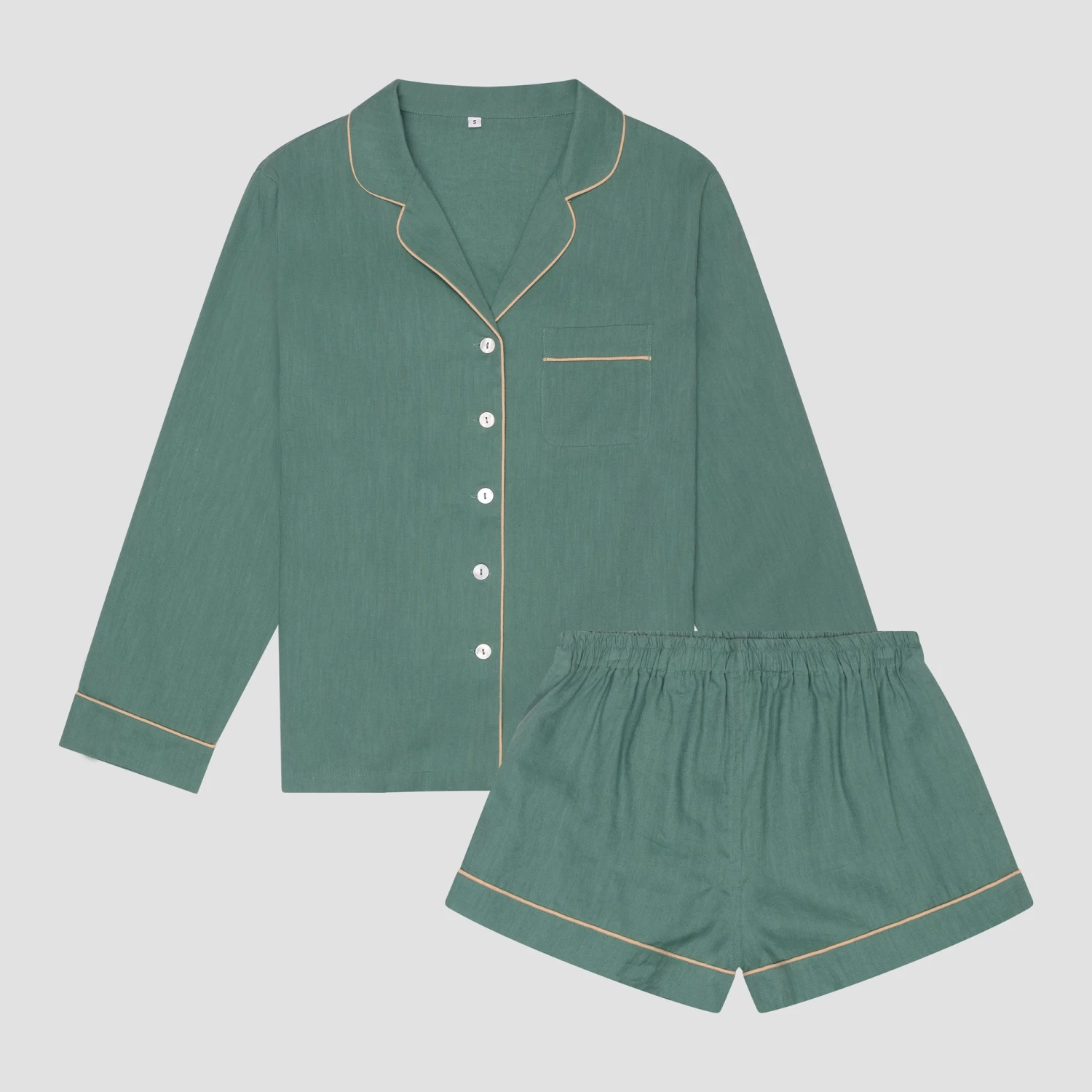 Tranquil Green Linen Tencel Women’s Pyjama Shorts Set